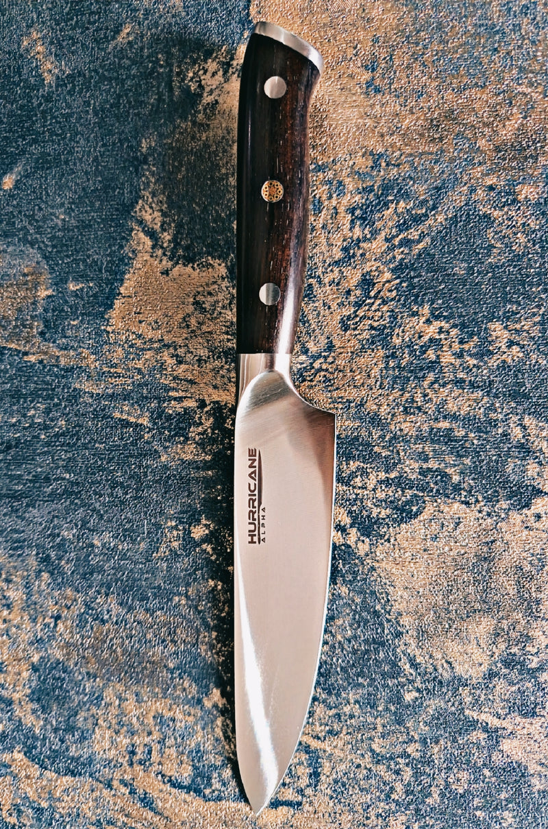 Compact yet powerful, the 5" Utility Knife bridges the gap between a paring knife and a chef’s knife. Precision-forged German stainless steel ensures a razor edge, while the ebony wood handle provides a comfortable, secure grip with a one-of-a-kind finish.